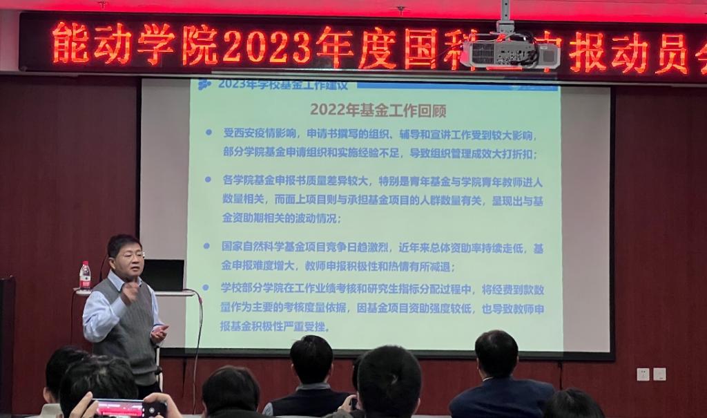 11月22日下午,能动学院召开了2023年度国家自然科学基金申报动员会(第一轮)。科研院副院长刘永忠教授、科研院基地与海外成果处主管何会老师、动力工程多相流国家重点实验室副主任陈斌教授应邀出席并做报告,学院140余名教师以线上、线下相结合的方式参会交流。