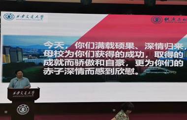教师代表王秋旺副院长特地送来祝福视频。他在视频中表示,感谢校友们的盛情邀请,祝贺同学们经过20年的磨砺,在各自岗位上书写自己的人生乐章,最后真诚地祝愿校友们在在今后的人生道路上走得更加辉煌,生活更加美满幸福,事业上锦上添花。
