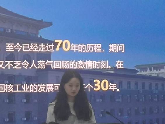 随后,西安交通大学学生微宣讲团庞小龙以 “三个三十年” 梳理中国核工业发展:1955—1985 年保国防、建体系、成 “两弹一星”;1985—2015 年促经济、建核电、强民生支撑;2015—2045 年追引领、筑强国、谋全球突破。宣讲简洁有力、振奋人心,回顾了核工业的辉煌成就的同时,也让大家深刻认识到 “科技兴则国家兴”,进一步坚定投身国家战略、勇攀科技高峰的信念。