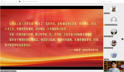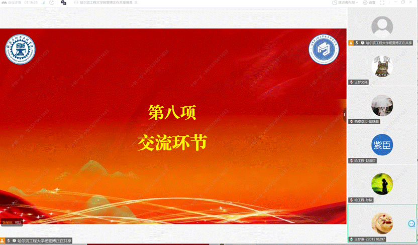 西安交通大学能动学院团委书记黄亚龙、团委副书记张玺晗、研究生辅导员马嘉谊以及八个支部140余名同学参加。会议由哈尔滨工程大学数学学院团委书记杨雯博主持。