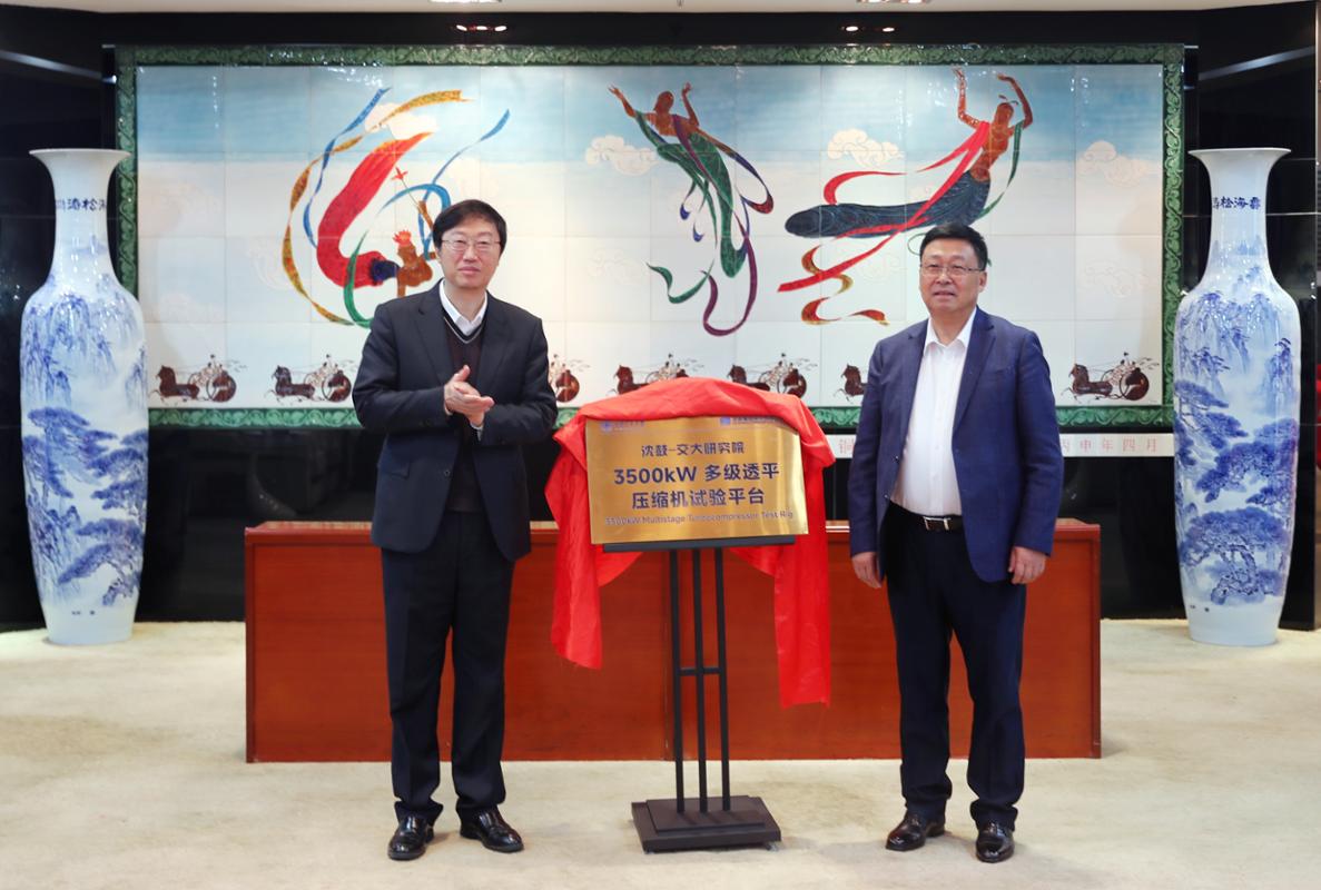 张立群、戴继双为“沈鼓集团-西安交大储能技术与装备研究院”揭牌。