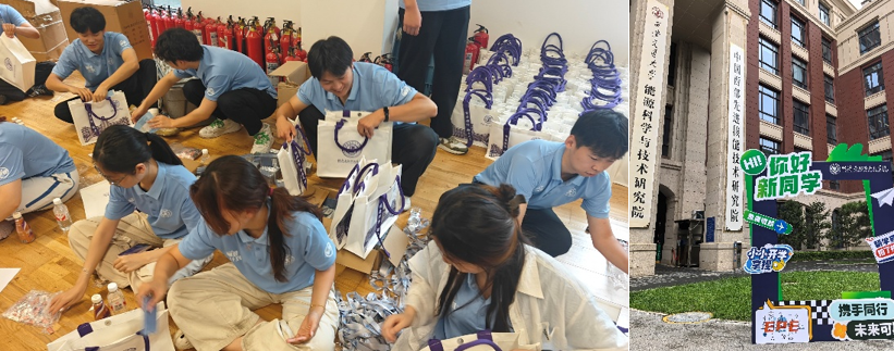 为了给2025级研究生打造充满仪式感与归属感的入学体验,能动学院在迎新工作中精心设计氛围营造环节:在各校区迎新点位,专属照片打卡墙搭配主题迎新展架,用鲜明的视觉设计定格新生初入校园的灿烂笑容,记录下这一意义非凡的入学时刻;在新生宿舍区,一条条饱含期许的迎新横幅悬挂于楼宇之间,营造出热烈又温馨的欢迎氛围。与此同时,学院统筹安排志愿者全程值守,并为每一位新生准备了定制化新生礼包。这份礼包中不仅有实用的校园指南,还有满载学院特色的文创产品,将学院的关怀与心意融入细节,让初来乍到的新生瞬间感受到“家”的温暖。